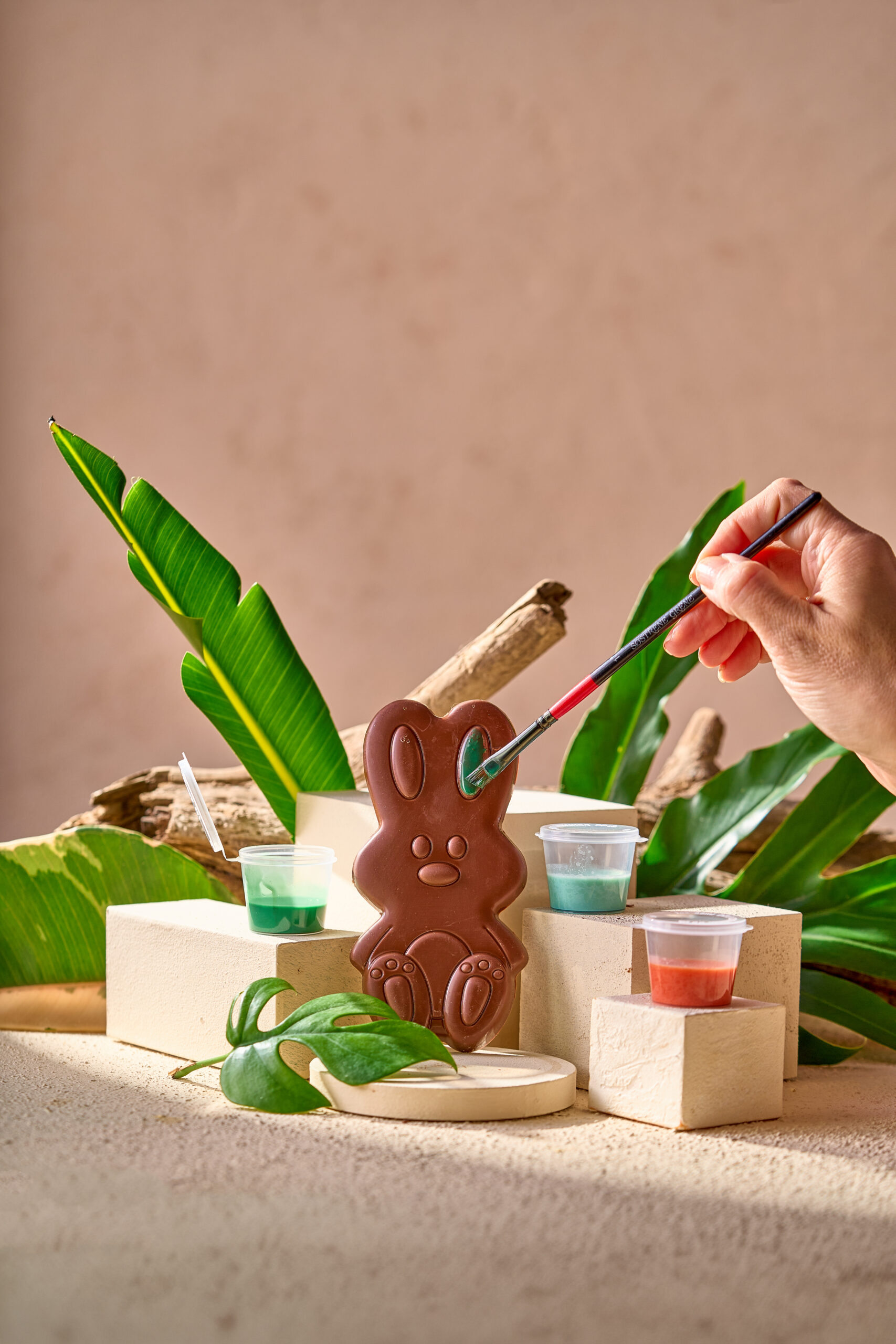 Dieses Set lädt dazu ein, einen Schokoladenhasen ganz individuell zu gestalten und macht Groß und Klein gleichermaßen Spaß.